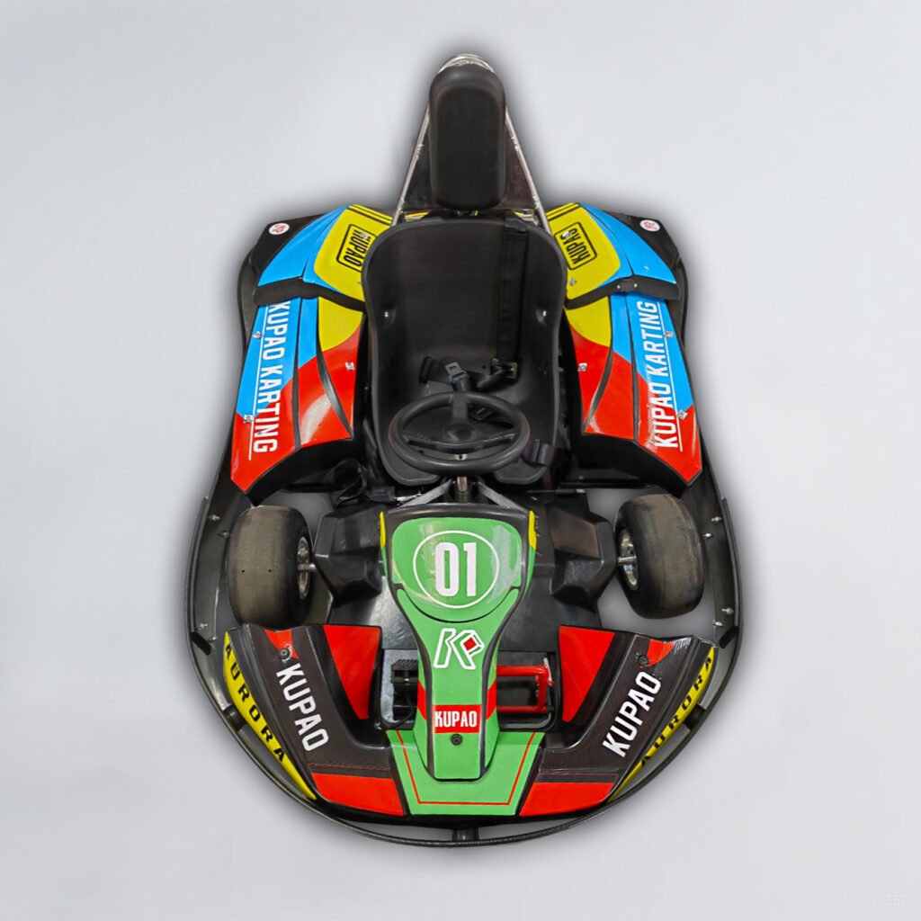 This go-kart features a compact and dynamic body design. The smooth lines combined with the high backrest create a strong racing style on the track. The single-seat layout further enhances the sporty genes of professional go-karts, allowing drivers to fully enjoy the pure driving pleasure.